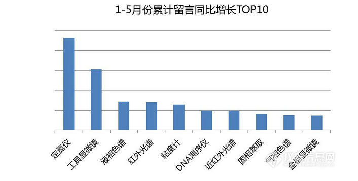 圖4中的定氮儀,和斯派克完全不一樣的行業,斯派克專注工業,而定氮儀是食物材料方面的,對大型食物材料企業尤為重要,隨著食物安全提高,越來越多中小型食物生產企業也需要到定氮儀,因此定氮儀毫無疑問地成了今年1-5月份的增長同比榜首。